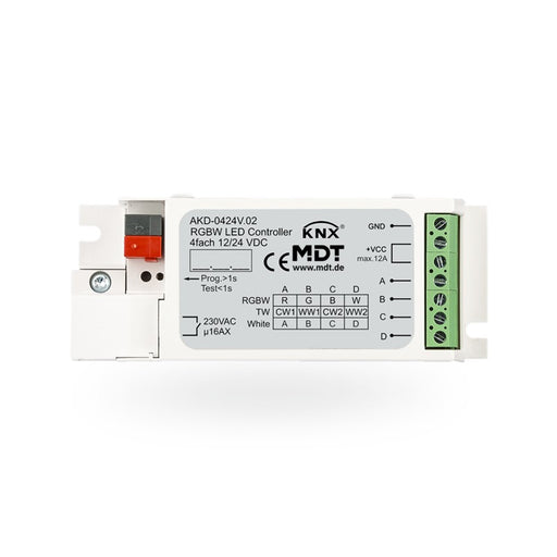 Typ: MDT AKD-0424V.02 LED ovládač 4-kanálový RGBW 3/6A EAN: 4251916130091 Bus System: KNX (TP) Stupeň ochrany: IP20 RGBW ovládač, vhodný pre 12/24V...