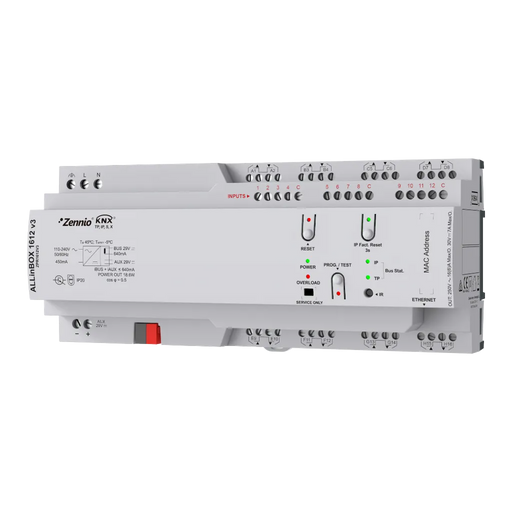 Typ: Zennio ZPR1612V3 ALLinBOX 1612 v3 - Multifunkčné zariadenie s napájacím zdrojom, KNX-IP rozhraním, 16 výstupmi, 12 vstupmi a logickým modulom....