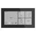 Das 6-Zoll-Display, das horizontal oder vertikal montiert werden kann, lässt sich per ETS individuell unterteilen und mit Farben, Logos oder Hintergrundbildern personalisieren. Das moderne Design des Glass Touch Smart wird durch die umlaufende Orientierungsbeleuchtung ergänzt. Dank bis zu 64 Funktionen können bis zu 12 Statusanzeigen auf verschiedenen Ebenen dargestellt werden. Der Knopf ist mit einem Temperatursensor und einem Raumtemperaturregler für Heiz- und Kühlbetrieb ausgestattet.