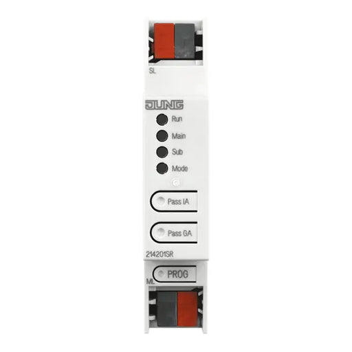 JUNGType: JUNG 21420 1S R Line coupler EAN: 4011377322073 Bus System: KNX (TP) Degree of protection: IP20 Mounting: DIN rail It connects two KNX data l...