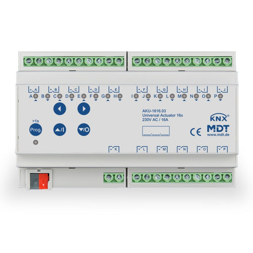 Type : MDT AKU-1616. 03 Actionneur universel 16x/16A EAN : 4251916130466 Système de bus : KNX (TP) Degré de protection : IP20 Le moteur universel ...