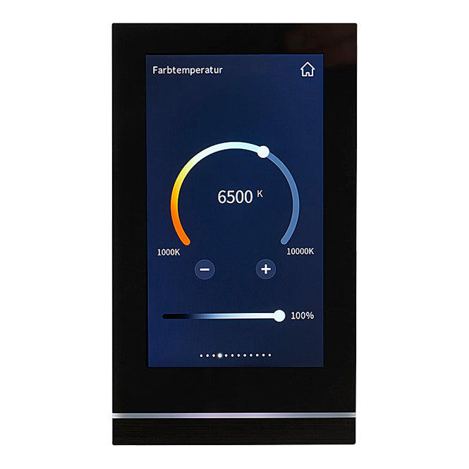 - ako multifunkčné zobrazovacie/ovládacie zariadenie pre KNX, s 480 x 854 pixelov, 5 kapacitným farebným dotykovým displejom