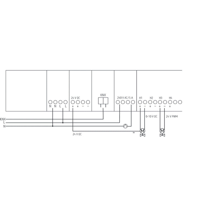 Vykurovací pohon na ovládanie 12 vykurovacích okruhov s termopohonmi, spínanie 24 V DC alebo trvalo 0–10 V DC. Integrácia až 2 čerpadiel vykurovacieho okruhu. Prispôsobenie vstupnej teploty podľa požiadaviek: automatický výpočet maximálnej akčnej hodnoty pre energeticky efektívne prispôsobenie akčnej hodnoty skutočným požiadavkám. Nie je potrebný žiadny izbový termostat KNX: flexibilné použitie každého kanála ako pohon kúrenia alebo regulátor kúrenia. Možno inštalovať priamo na DIN-lištu v rozdeľovači vykurovacích okruhov. Technológia bezskrutkového terminálu. Integrovaný napájací zdroj pre termopohony. Voliteľná trvalá alebo spínacia akčná hodnota.