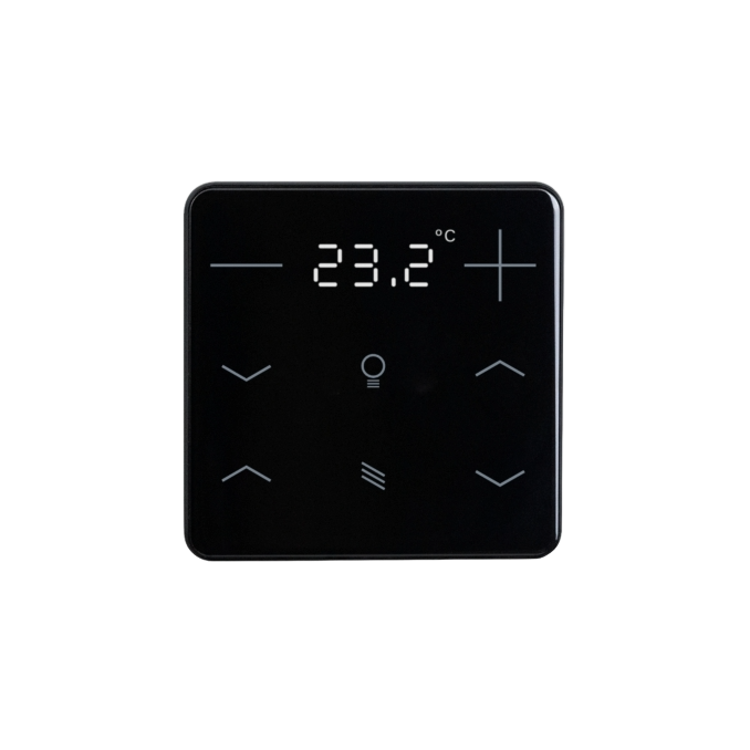 Svetlo/slnečná clona KNX eTR 208 má PI regulátor pre vykurovanie a chladenie. Požadovanú teplotu je možné zmeniť pomocou dotykových tlačidiel „+“ a „-“. Komunikačné objekty môžu byť prepojené pomocou logických hradiel AND a OR.